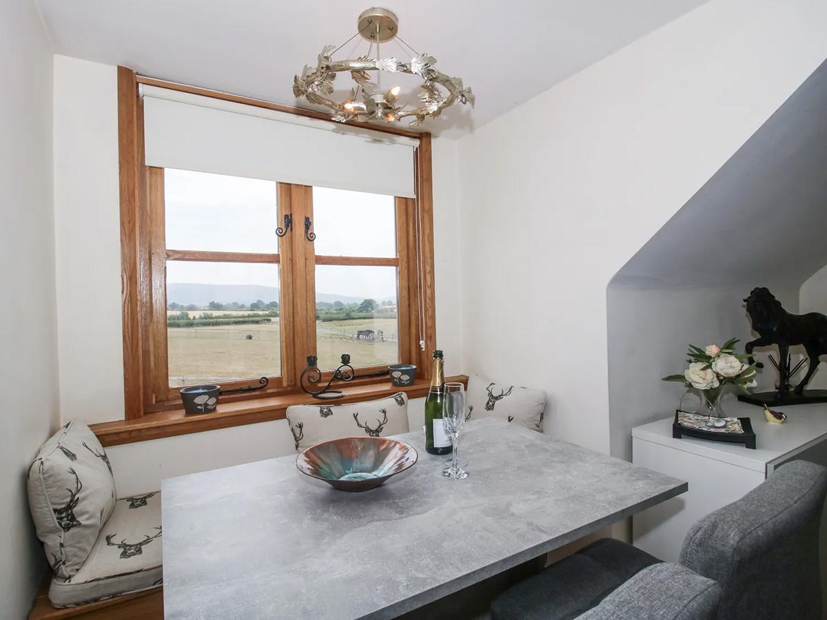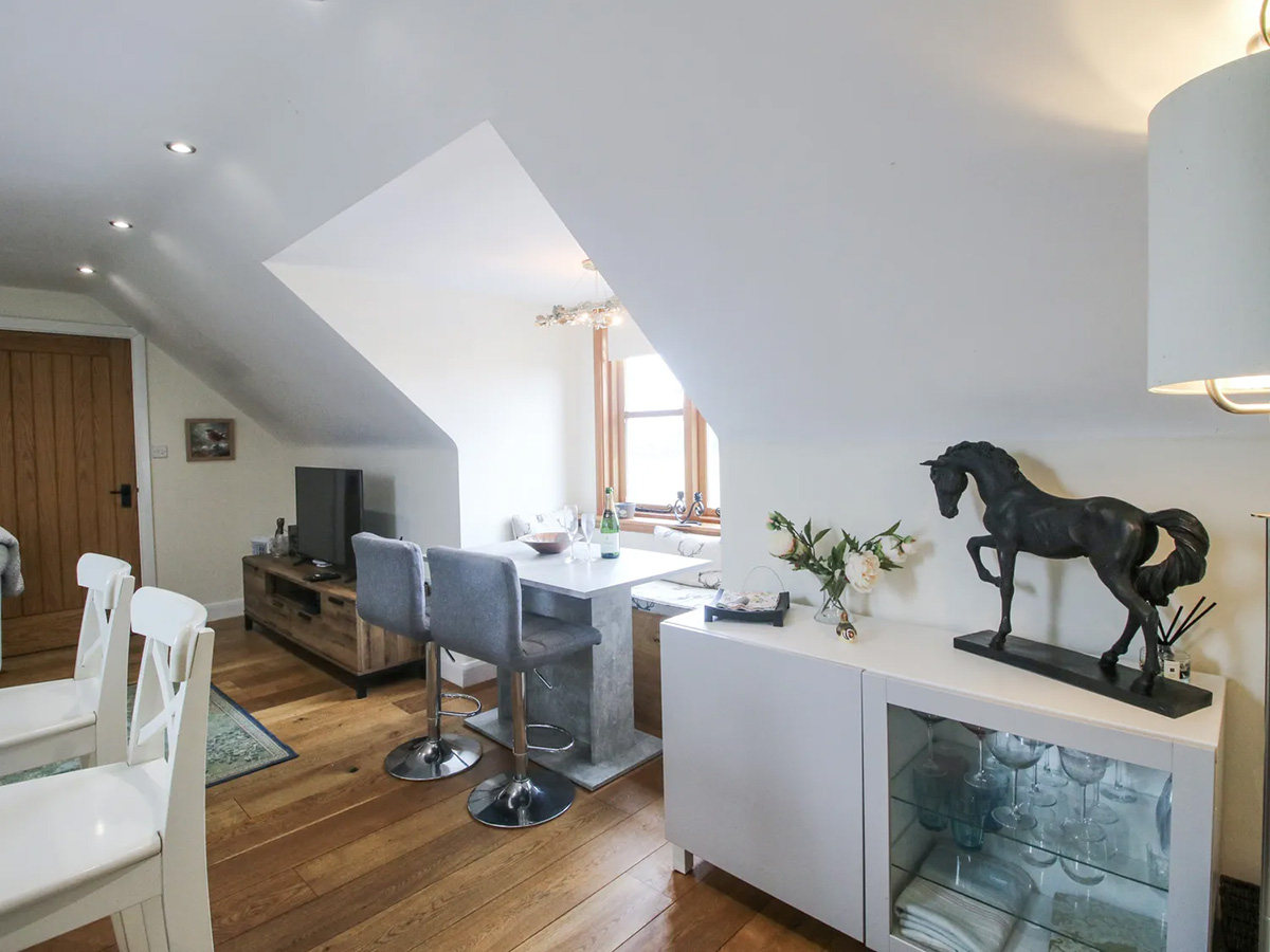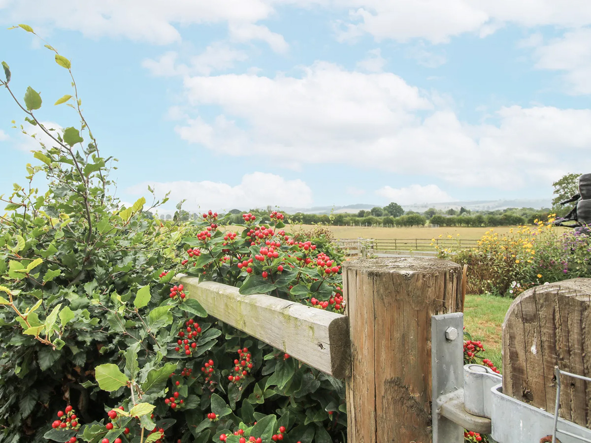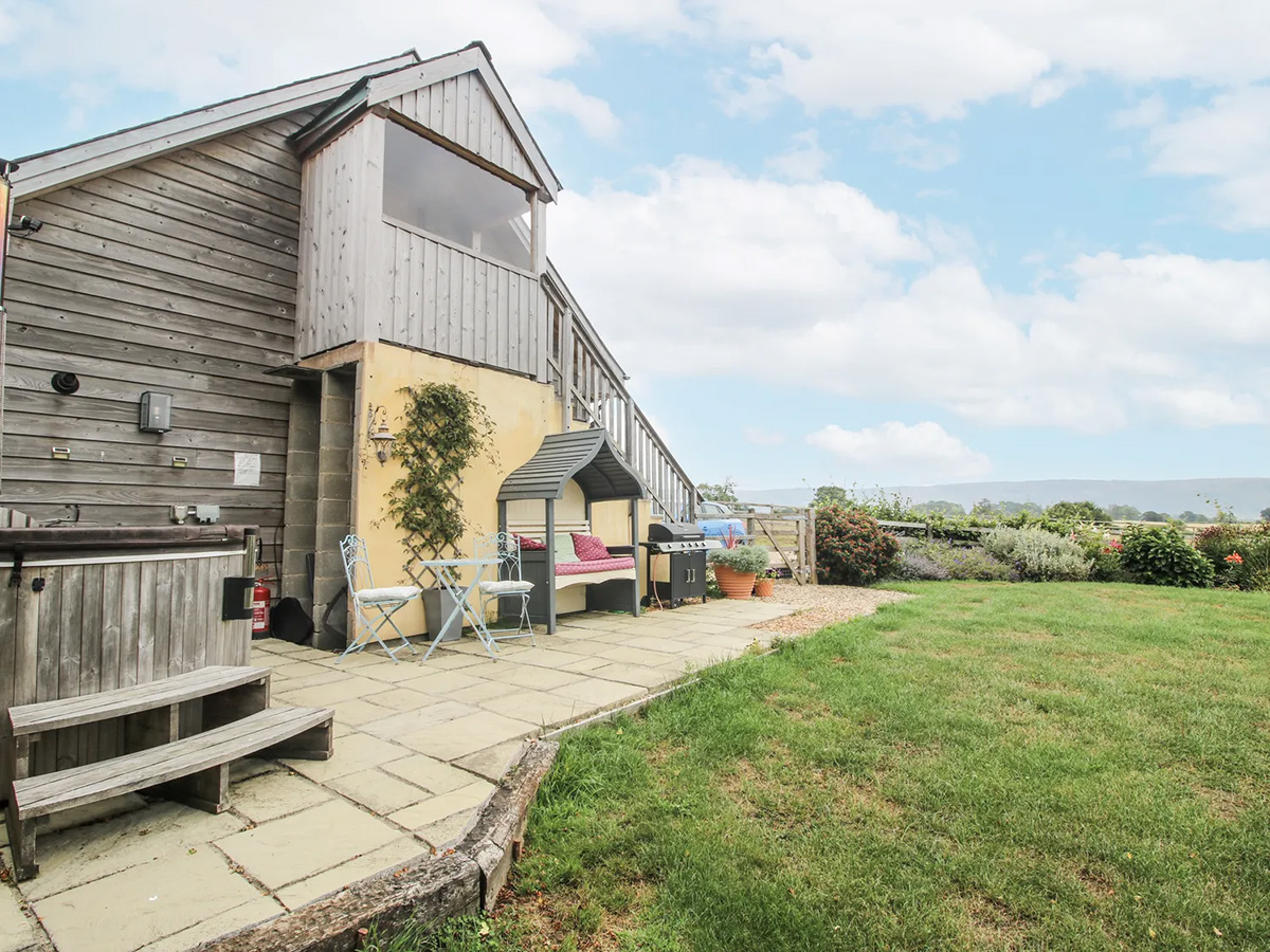 A peaceful countryside retreat for two, set above the owner’s garage on a working stud farm near Bishop’s Castle, with beautiful views, a private garden and hot tub, and easy access to the Shropshire Hills.